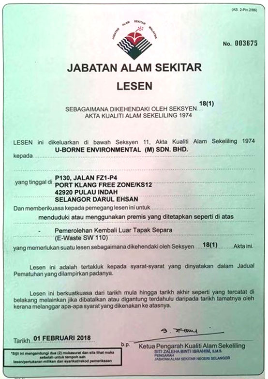 友邦-废物产生者登记证